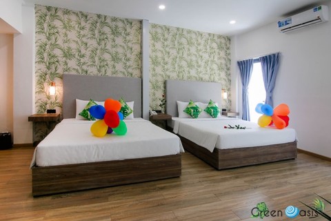 Green Oasis Hotel vừa mới được xây dựng, trang thiết bị hiện đại, phòng nghỉ tiện nghi. Green Oasis sẽ luôn làm hài lòng bạn với một khách sạn hoàn toàn mới và sang trọng, cùng với sự đón tiếp nhiệt tình và phong cách phục vụ chuyên nghiệp của đội ngũ nhân viên mến khách và năng động. Với rất nhiều dịch vụ cùng không gian nghỉ dưỡng tiện nghi, đặt phòng khách Sạn Green Oasis chính là lựa chọn đúng đắn cho kỳ nghỉ ngơi và thư giãn của bạn.